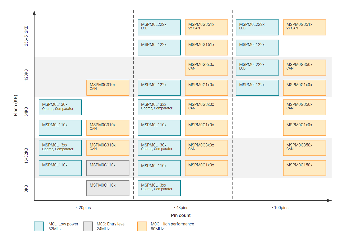 MSPM0 MCU 包含多个产品系列,可以满足不同的应用需求。